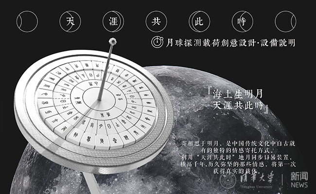 “海上生明月,天涯共此时。”明月为不能“共处一地”的人们提供了能够“共处一时”的情感寄托。方案“天涯共此时”是一个现代版的“日晷”,它搭乘嫦娥探月着陆器,以月球表面为天文观测点,为地球上的人们提供“月亮时”。它在“地月互动”的过程中寄托人们的情感,传播天文知识,真正实现“天涯共此时”。