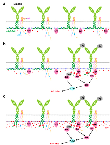 记忆性B淋巴细胞借助酸性磷脂对抗原受体mIgG-Tail结构和功能的动态有序调节实现了对记忆性B细胞快速高效的跨膜信号转导的有效控制,从而遏制高反应性的记忆性B细胞异常免疫活化可能引起的自身免疫病和B细胞淋巴瘤的发生。该研究成果为记忆性B淋巴细胞的免疫识别、免疫活化和免疫调节提供了新的分子机制,对帮助人们深入理解抗体的免疫记忆,从而在新视野下对疫苗研究、相关疾病如自身免疫病、B细胞淋巴瘤的致病机理、以及药物开发等提供新的理论依据。