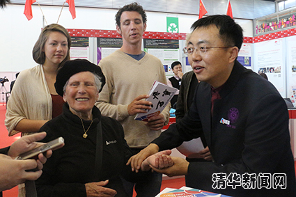日内瓦90岁高龄的老人参观并试戴方舟万宝硬件。