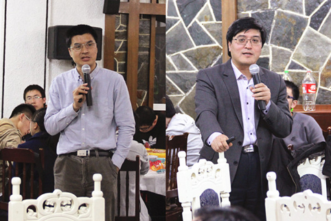 过增元院士(左)和刘建明老师(右)作报告 许然 摄