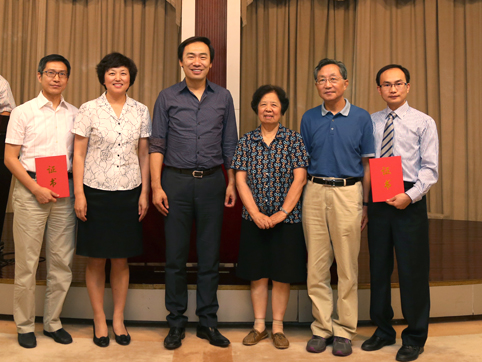 图为会后,陈旭、贺美英、孙家广与邓峰、郭振格、赵仕勤合影留念。