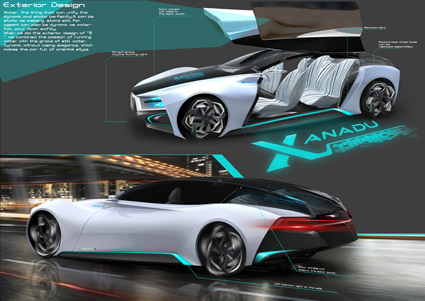 在第四届CDN大赛中,乐动平台美术学院工业设计系研究生吴雨练、本科生刘可风的作品《香都》获得“最佳奢华概念奖”冠军。《香都》是一款外形时尚的豪华轿车,面向未来中国新兴高收入群体,车身采用流线形设计,黑白相间,内外浑然一体,宛如一件完美的艺术作品。