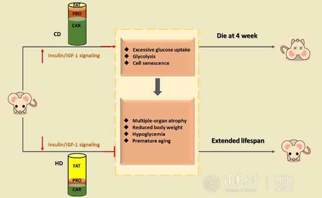 调节Insulin/IGF1信号通路延长小鼠寿命示意图示意图