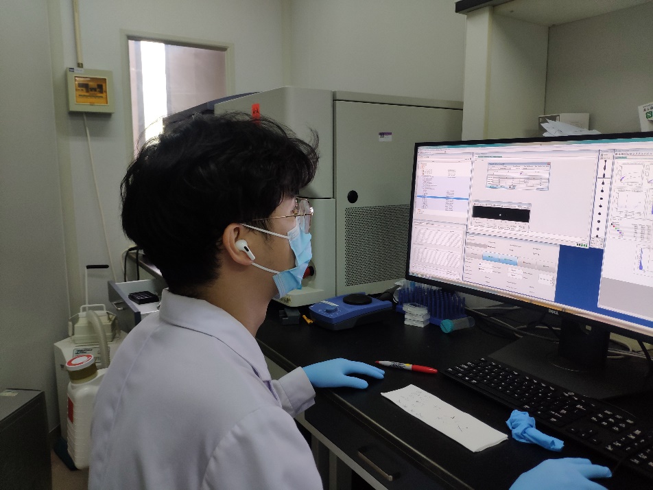 张林琦教授实验室的研究生在操作流式实验