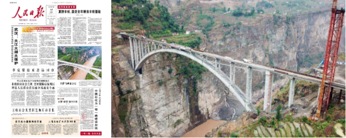 《人民日报》报道(左) 桥梁竣工后照片(右)
