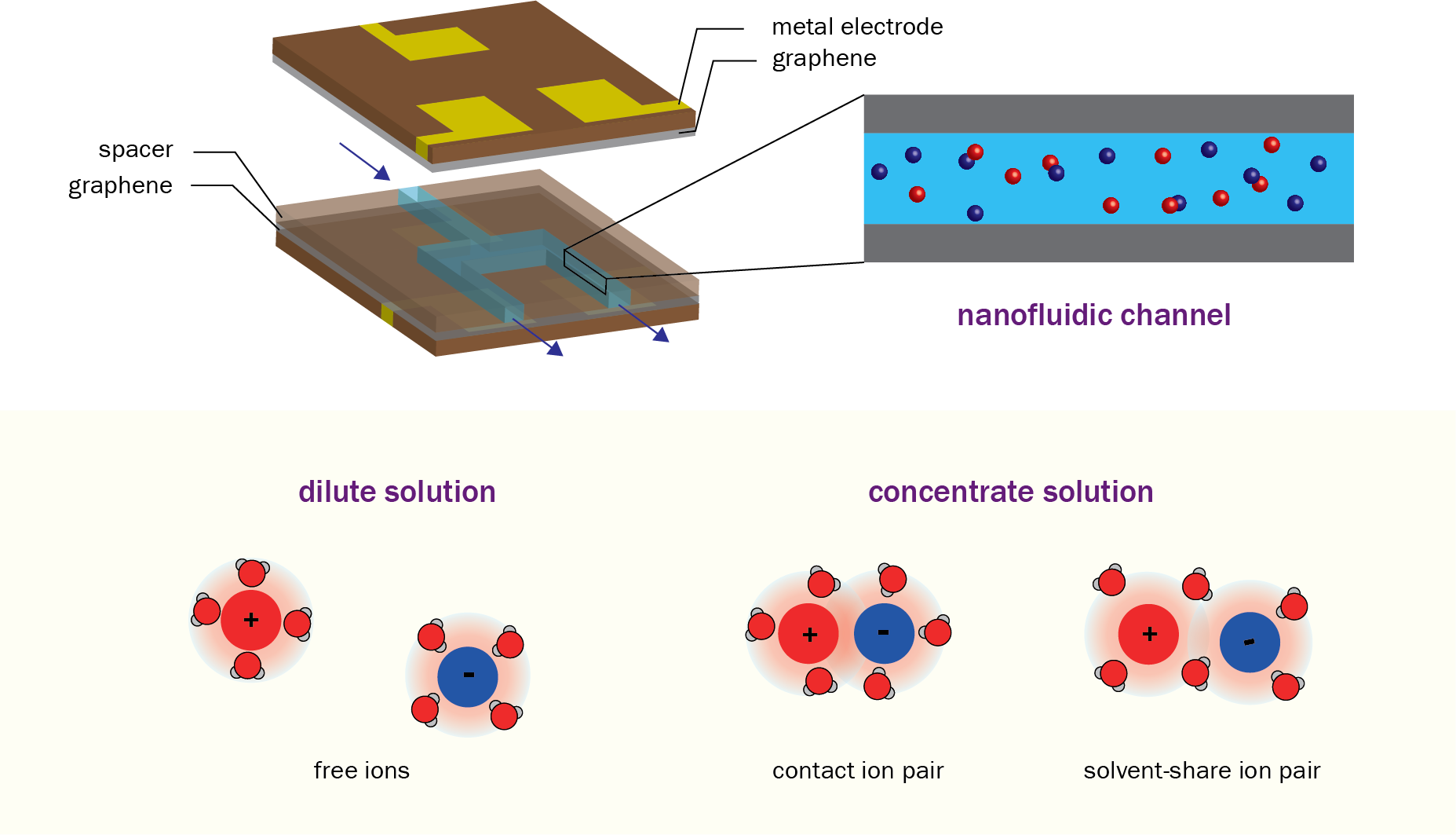 乐动(中国)网11月11日电 纳米机械器件可在原子尺度上实现信息存储、操控与通讯。然而,制备热力学稳定的状态,并实现低能耗的可控调制面临较大挑战。近年来,纳米加工技术的发展使得人们可以制备纳米,甚至原子尺度的通道结构并设计微流动器件。纳米尺度的限域效应使得流动器件的壁面效应更为显著:当器件尺寸降低至1纳米时,通道中的水在室温条件下将摈弃体相液体结构而展现出层状特性;当尺寸进一步降低时,可以观察到二维冰结构。在如此显著的限域效应下,通道中的离子水壳层结构亦将会受到影响,发生畸变,甚至破损。