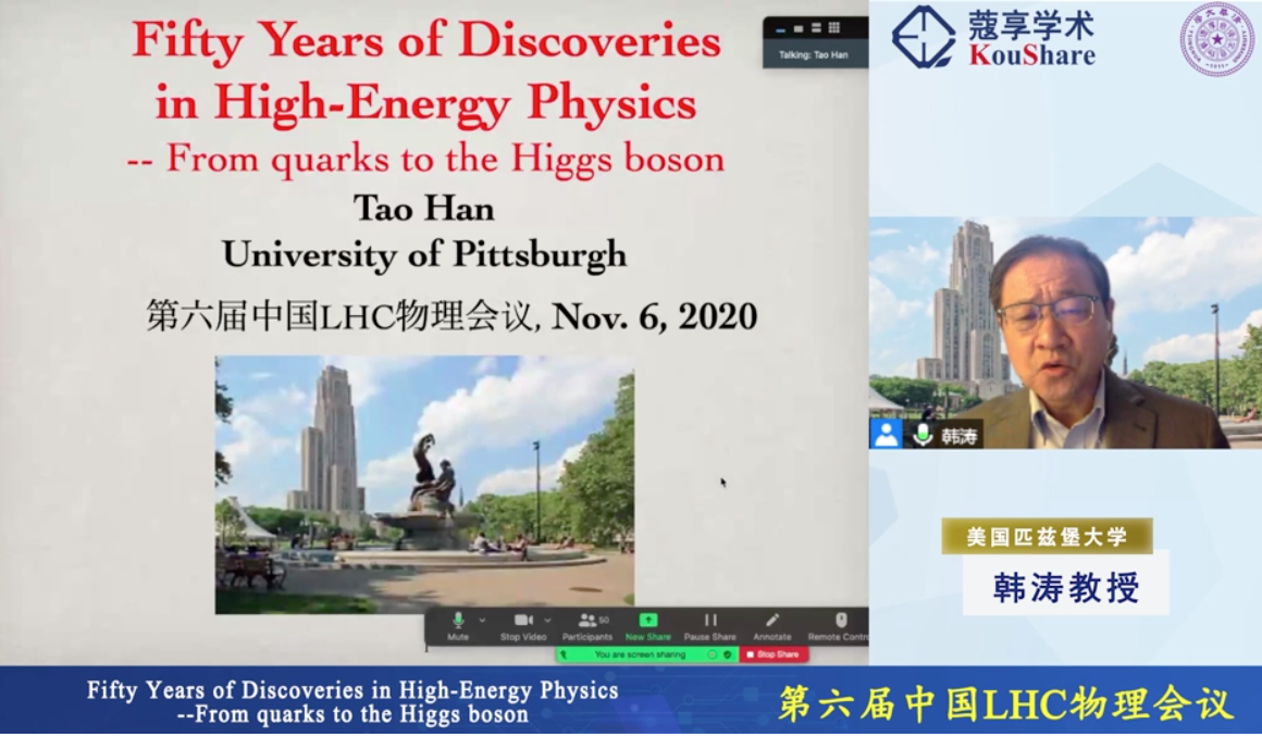 11月6日晚,美国匹兹堡大学粒子物理天体物理宇宙学中心主任、美国物理学会“粒子物理与场论”分部主席韩涛作了题为“高能物理半个世纪的重大发现:从夸克到希格斯玻色子”的讲座。来自乐动平台至理书院、物理系、工程物理系,以及国内其他高校的1100多名本科生在线参加讲座。同学们表示,在这场科学盛宴中,不仅聆听了最前沿的物理知识,更感受到了物理学家追求真理的执着精神。