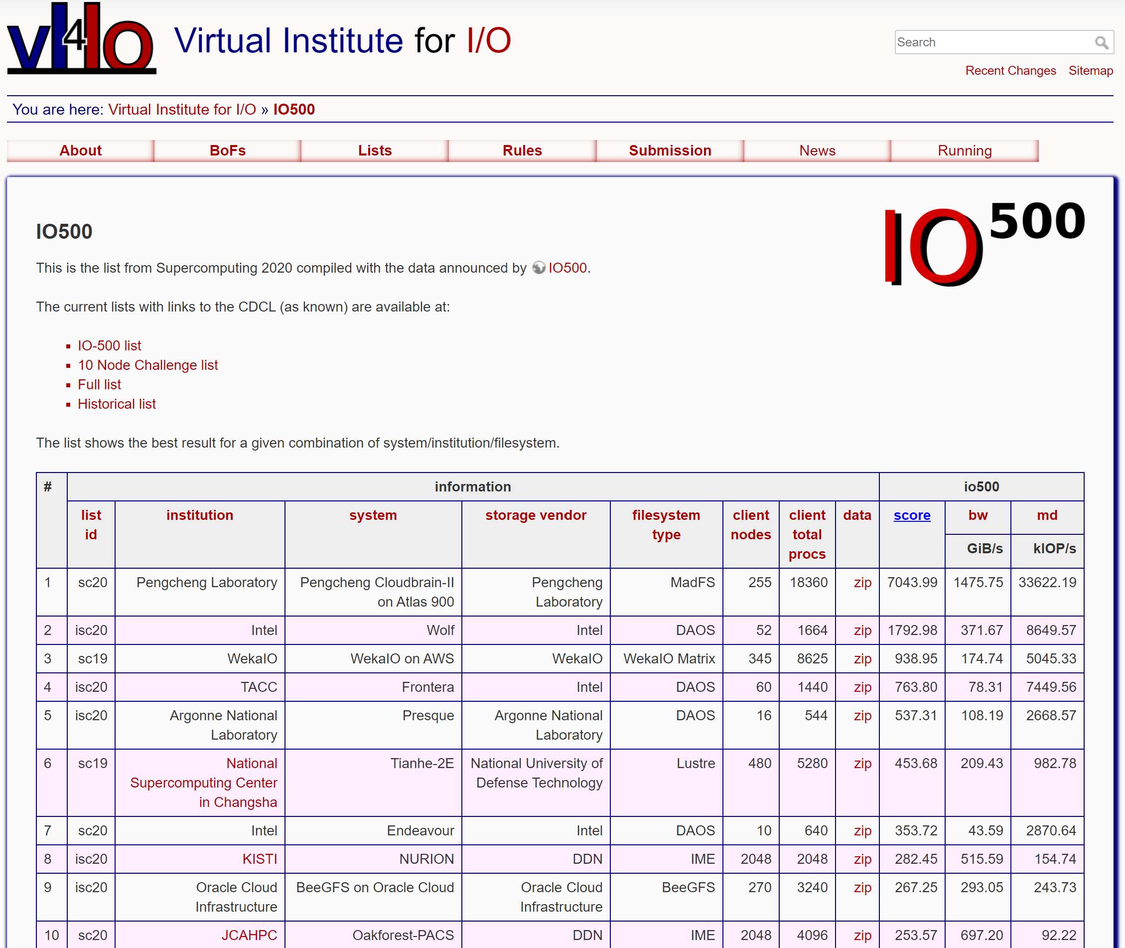 IO500全系统榜单前十