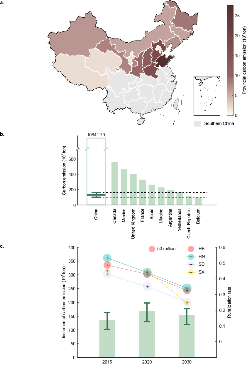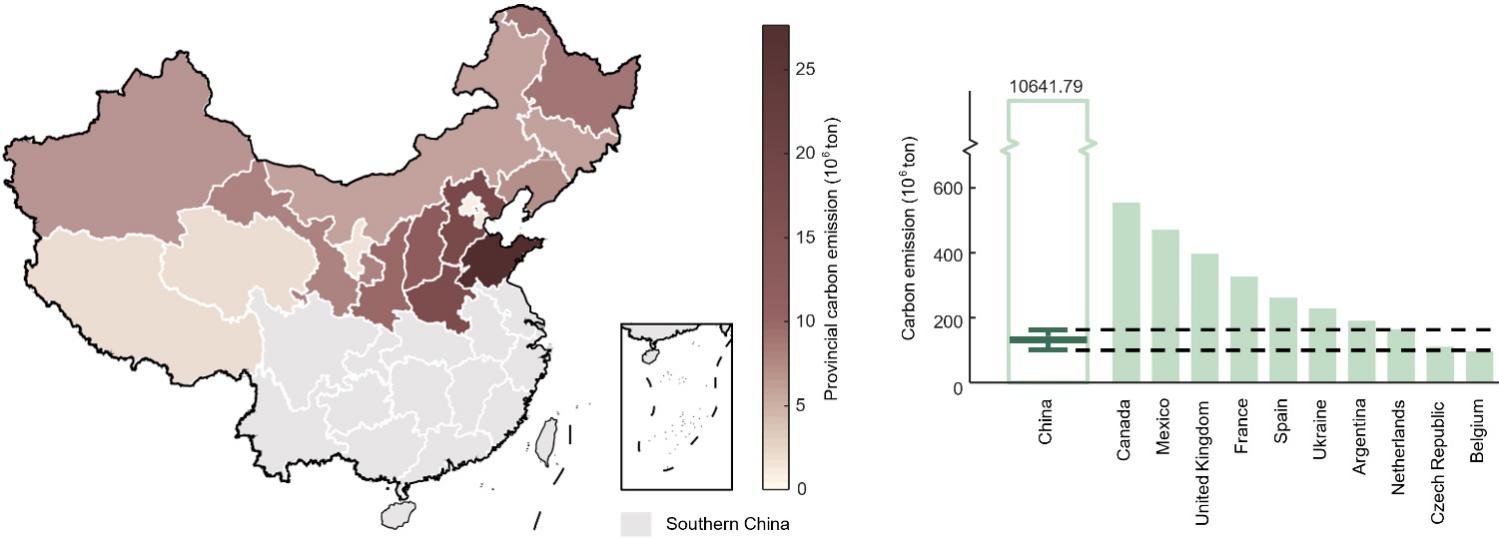 图2.(a)2015年中国北方各省实施电代煤的碳排放;(b)中国碳排放增量影响显著