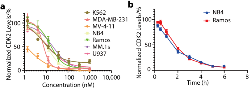 图3. CPS2在多种细胞系内诱导CDK2的高效选择性降解