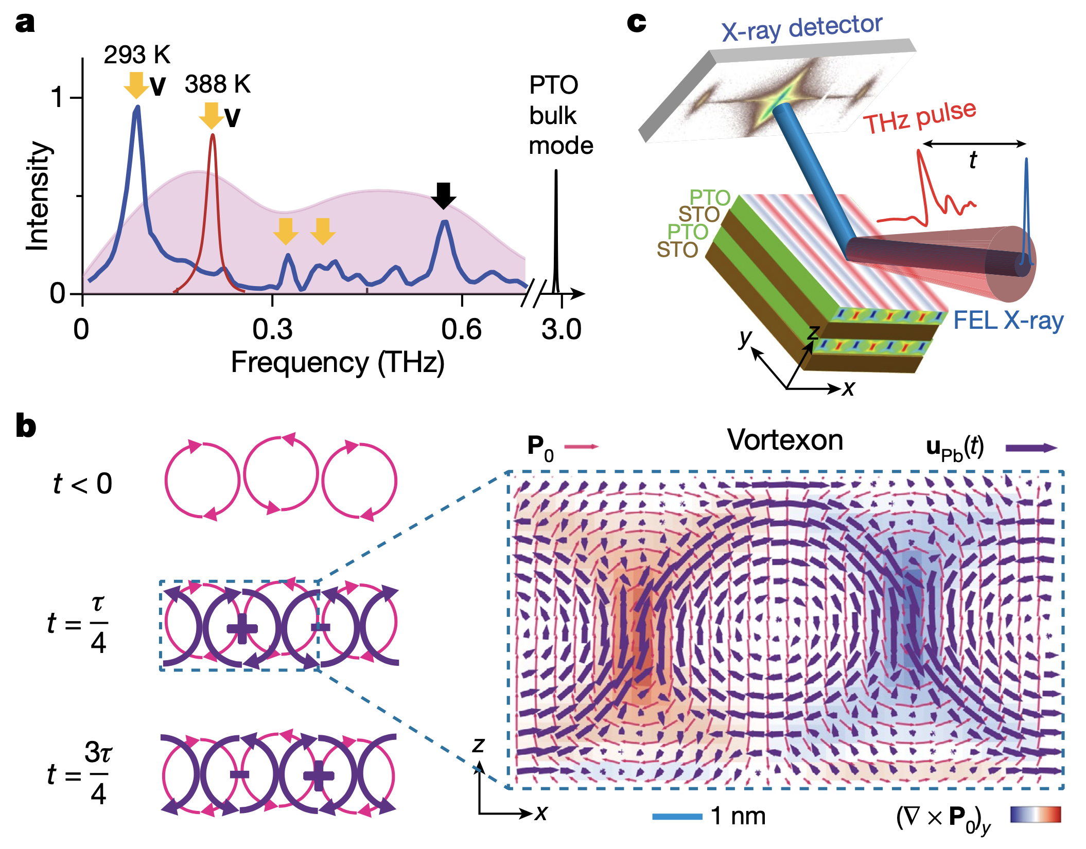 乐动(中国)网4月20日电 近日,由乐动平台材料学院李千助理教授和美国阿贡国家实验室Haidan Wen博士等人组成的研究团队首次实验观测到铁电极化涡旋在亚太赫兹频段的多个集体晶格振荡模式,并发现一种具有大应变与电场调谐性的涡旋软模(vortexon)。该研究工作是近年来基础铁电物理学的一个重大突破,其发现的涡旋畴的动态性质在5G/6G微波介电、太赫兹光电子等新兴领域均有潜在应用前景,并在方法学层面上树立了材料超快结构动力学研究的新范式。