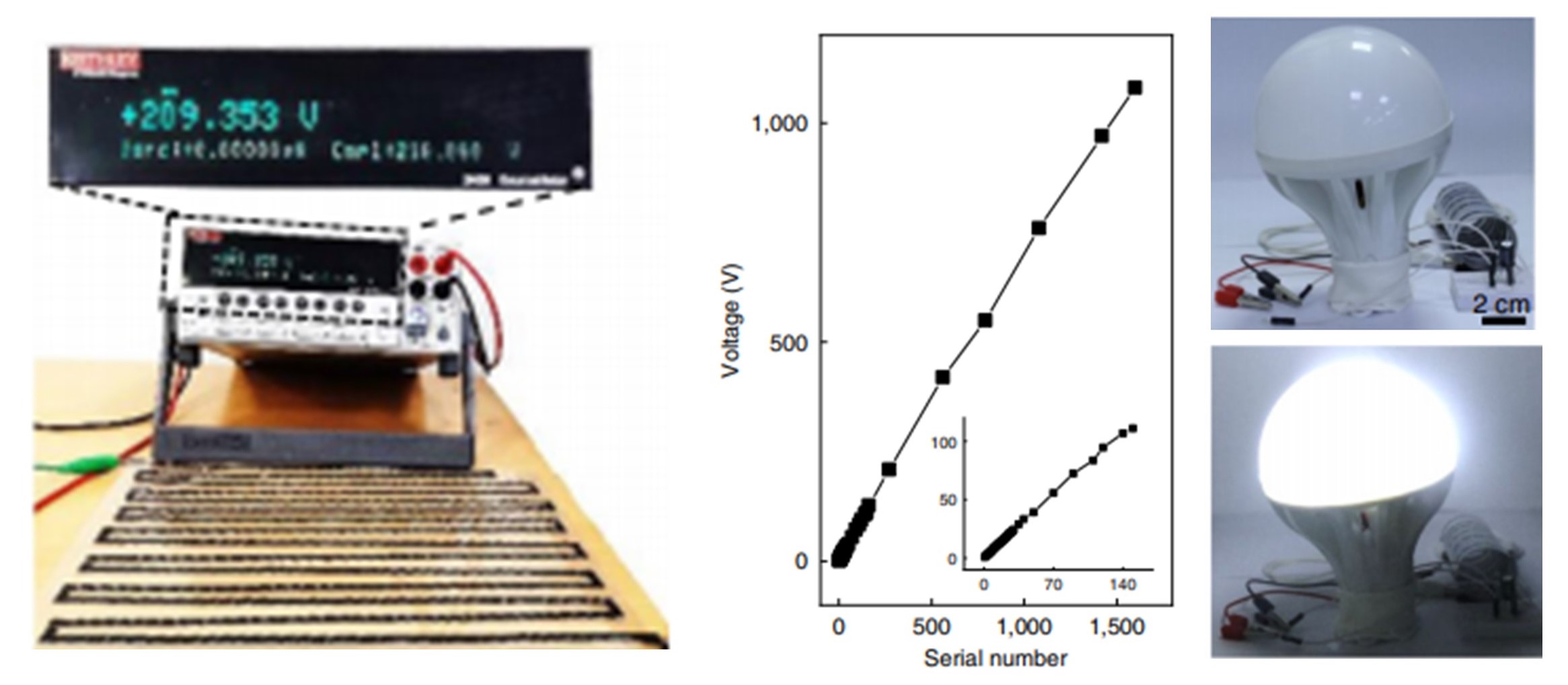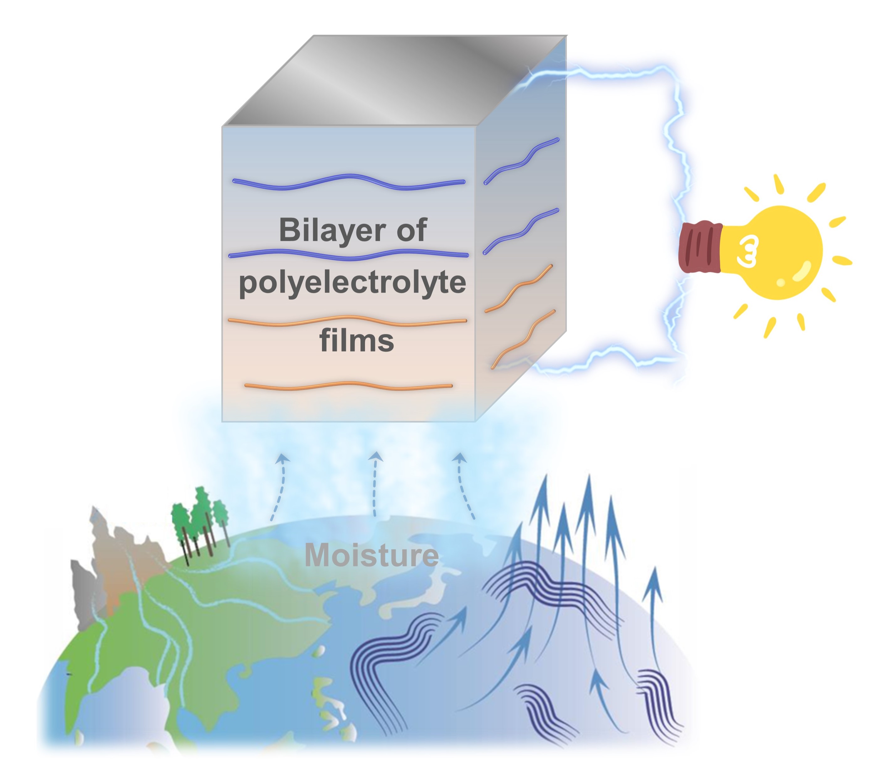 该成果近期发表于《自然·纳米技术》(Nature Nanotechnology),题为“异质膜湿气发电实现千伏电压集成输出”(Bilayer of polyelectrolyte films for spontaneous power generation in air up to an integrated 1,000 V output)。