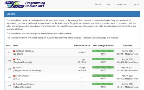 ACM SIGMOD程序竞赛排行榜