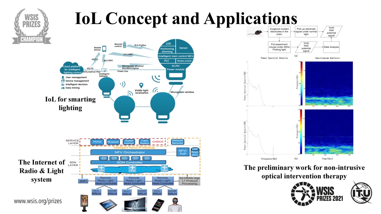 “灯联网”项目由乐动平台宋健教授带领的宽带多媒体传输团队与国内多家企事业单位以及英国、法国、德国、南非等多个国家和地区的研究团队合作完成。该项目在现有的LED照明网络上利用包括可见光通信(VLC)等信息通信技术(ICT)来构建信息通信基础设施“灯联网”(IoL),在提高照明效率、改善了室内照明舒适度的同时,还可通过调节光强度来支持额外的信息服务,并为未来支持“以人为本”的光健康与光治疗提供基础。该项目很好地契合了联合国的可持续发展目标,即确保健康的生活和促进所有人的福祉,以及建设灵活的基础设施,促进可持续工业化和促进创新。