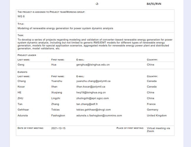 该项标准的成功立项,在可再生能源接入电网分技术委员会(IEC SC8A)开辟了一个新的工作方向,为更好开展后续相关标准编制工作,可再生能源接入电网分技术委员会(IEC SC8A)成立了可再生能源发电建模工作组(Working Group 8),并由乐动平台自动化系耿华教授担任工作组召集人。该工作组的成立及相关标准的成功立项,标志着我国在新能源发电技术领域话语权得到进一步提升,对于以国际标准推动我国产品和服务走向世界,提升我国在该领域的国际竞争力具有重要意义。