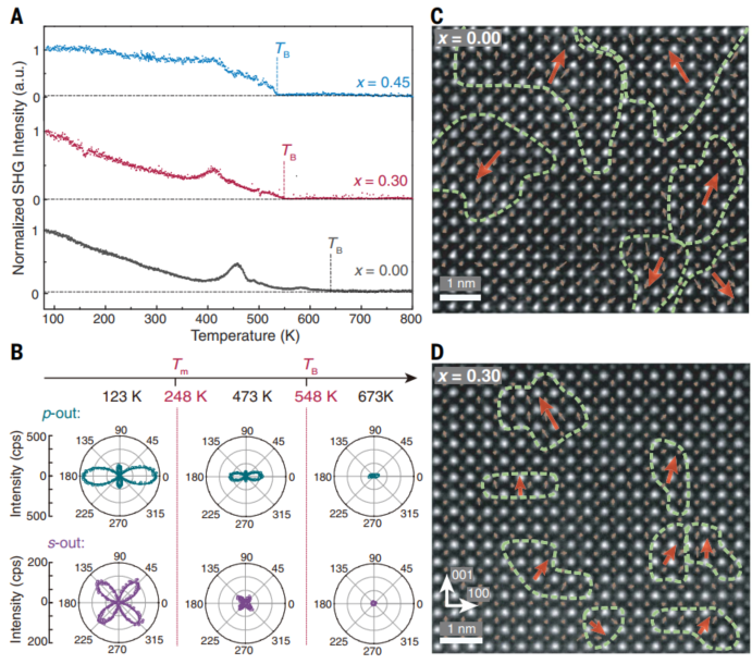 图3. SHG和STEM手段探究超顺电的微观结构机理
