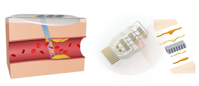 乐动(中国)网10月29日电 心血管疾病是全球第一大死因,据世界卫生组织预测,到2030年将有约2360万人死于心血管疾病,长期连续监测血流速度对心血管疾病防治具有重要意义。例如,颈动脉在高血压、高血脂等因素作用下往往会出现一定程度的硬化而形成硬化斑块,容易引发脑卒中危险,准确判断管腔狭窄程度是预警斑块脱落和防治脑卒中最重要的方法之一,但当前可持续监测血管狭窄状况的技术手段十分缺乏。基于光容积描记术或热分析的技术只能提供相对的流量变化,探测深度很浅;而传统的超声设备体积大、材质刚性,存在固定困难、接触变形大、无法与人体表面良好耦合和难以连续监测等缺点。