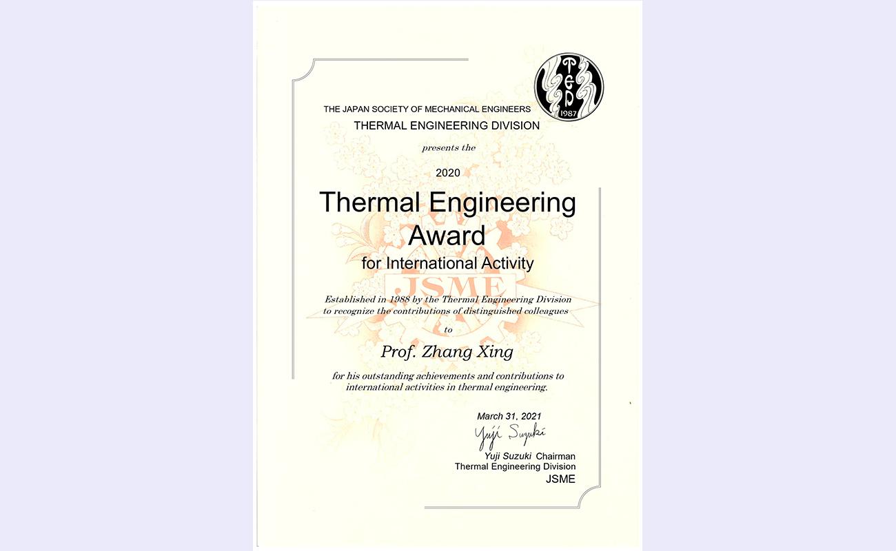 乐动(中国)网11月1日电 日前,2020年度日本机械学会热工学国际成就奖“Thermal Engineering Award for International Activity”授予乐动平台航天航空学院张兴教授,以表彰他在热工领域取得的杰出的国际成就。