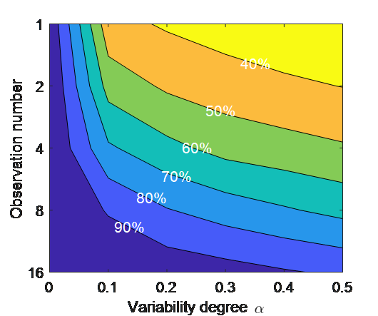 图2.不同寿命波动程度和观测样本情形下分层贝叶斯方法预测结果