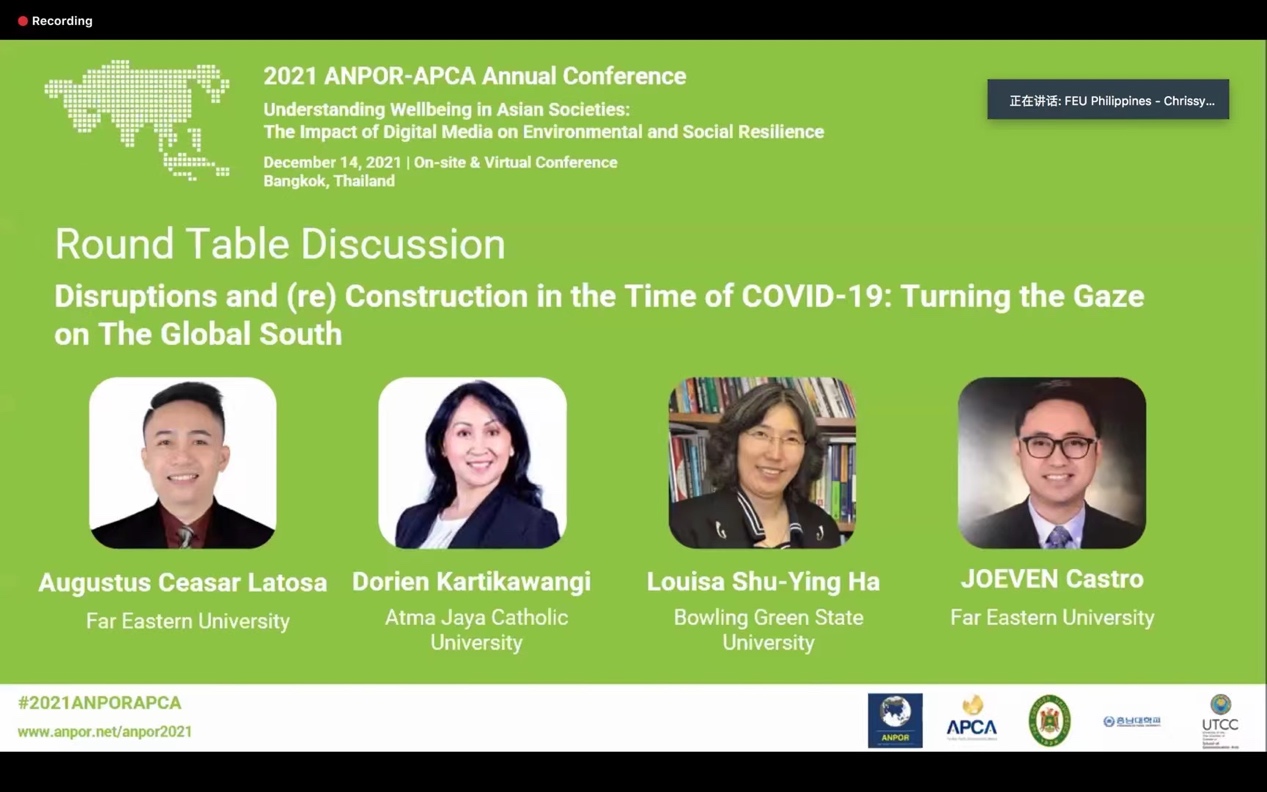 乐动(中国)网12月22日电 由亚太新闻传播学会联盟(APCA)与亚洲舆论学会(ANPOR)联合举办的2021年学术年会,于12月14日在泰国曼谷以线下线上相结合的方式举行,年会的主题是“了解亚洲社会的福祉:数字媒体对环境和社会复原力的影响”(Understanding Wellbeing in Asian Societies: The Impact of Digital Media on Environmental and Social Resilience)。年会发表了来自十多个国家和地区的学者的96篇学术成果,按照数量多少依次来自中国大陆,泰国,印度尼西亚,马来西亚,韩国,中国香港、美国,日本,巴基斯坦,中国澳门,柬埔寨等国家和地区。中国大陆有42篇论文入选。