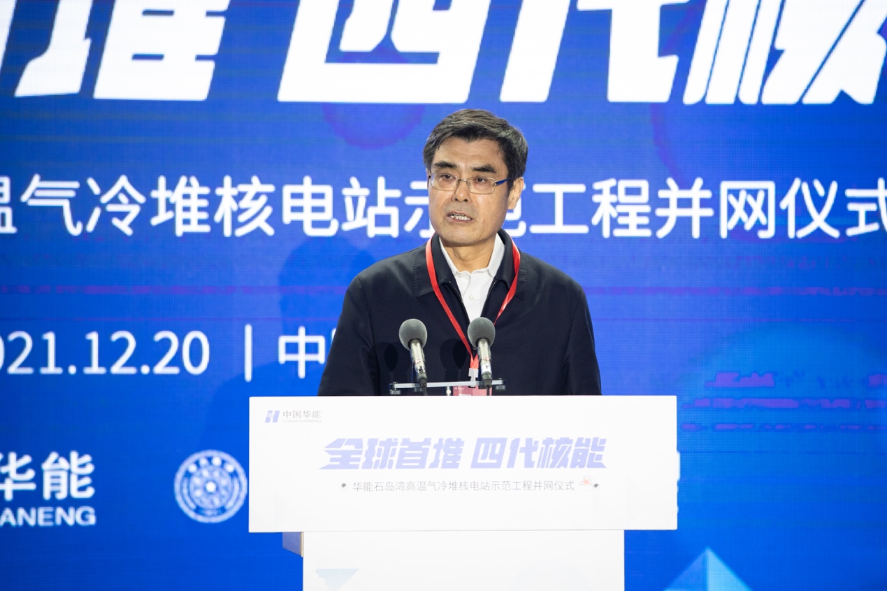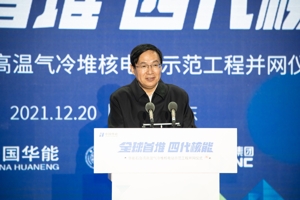 并网仪式上,周乃翔代表山东省委省政府对示范工程成功并网表示祝贺,并对所有项目参与者的辛勤付出表示感谢。他指出,高温气冷堆示范工程的并网发电,是学习贯彻习近平总书记关于核工业发展的重要指示精神、进一步研究推动核电事业高质量发展具体思路和举措的良好契机。他就共同抓好核电发展提出了四个方面的要求:一是大力支持核电安全高效发展,全省各级各有关部门要统一思想认识,为保障国家能源安全作出应有的贡献;二是坚决守牢安全这一核电发展的生命线,不折不扣地落实核安全法律法规,做好与社会公众的交流沟通,积极回应各方关切;三是全面拓展核电各领域突破,加强项目合作、产业合作、科技人才合作,促进核电领域产学研用高效衔接,推出更多标志性、引领性科技成果;四是营造核电发展的良好环境,强化统筹协调、要素保障,做优项目服务,凝聚推动核电事业持续健康发展的强大合力。威海市、荣成市要根据项目建设所需,一如既往做好各项服务保障工作,努力为国家核电事业发展贡献更多山东力量。