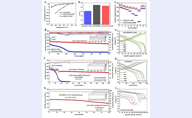 低温下(低于-20℃)锂电池容量和寿命迅速衰减,是冬季电动汽车性能不佳的主因。主要原因是目前广泛应用的电解液(基于碳酸酯基溶剂)在低温下粘度显著提升,本体和界面离子迁移率下降。另外,更高容量的锂金属负极不能与常规的碳酸酯基电解液搭配使用(副反应严重和枝晶不可控生长,库伦效率低和循环稳定性差)。