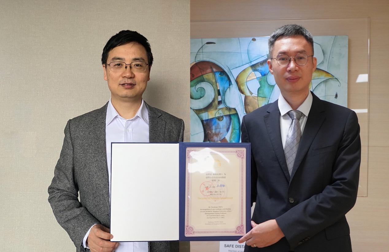 冯雪(左)为陈晓东颁发“乐动平台杰出访问教授”聘书