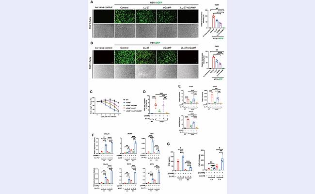 图4.LL-37-cGAMP可以强烈激活宿主抗病毒免疫