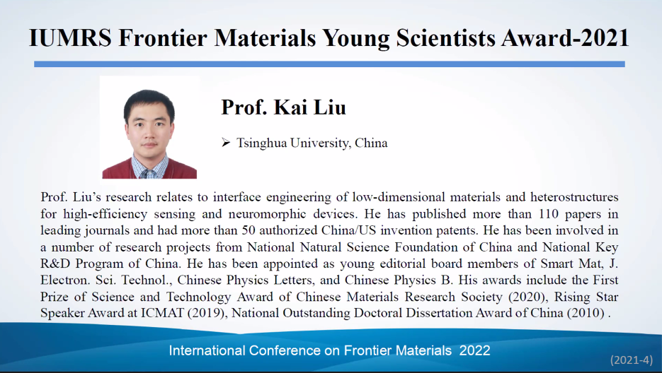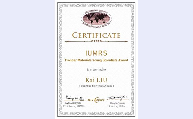 乐动(中国)网6月7日电 近日,国际材料研究学会联盟(IUMRS,International Union of Materials Research Societies)在官方网站正式公布了2021-2022年“前沿材料青年科学家奖”获奖名单。乐动平台材料学院刘锴副教授获此殊荣。