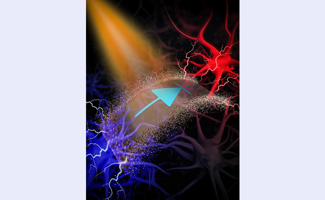 图1.可降解硅薄膜二极管产生光电信号激活和抑制神经活动(示意图)