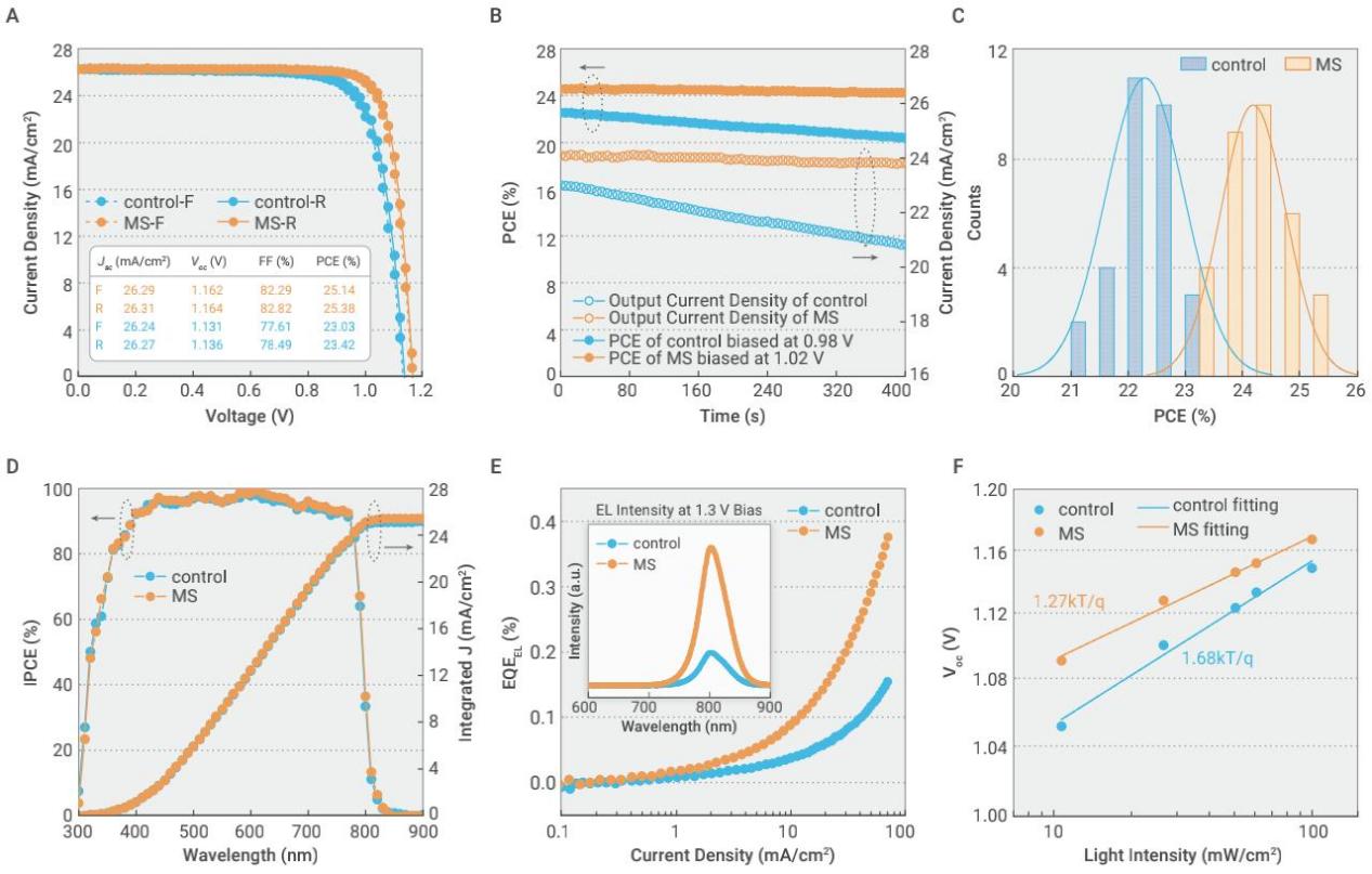 添加剂对钙钛矿太阳能电池光电性能的影响(橙色和蓝色分别为添加剂组和对照组)