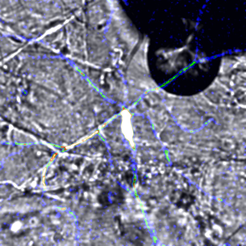 研究发现c4da神经元对毫牛级别的机械力刺激敏感,同时对压强分布范围较小的刺激表现出更高的敏感性,这一发现为理解c4da神经元参与感知果蝇幼虫天敌的袭击提供了细胞生物学基础。进一步的实验和力学模型分析发现c4da神经元通过优化自身的树突网络形态,发展对侧向组织张力的敏感性和树突内主动信号扩散等细胞生物学机制优化了其对机械痛觉刺激的感知(图3)。该项研究结合了生物物理和神经科学等诸多相关领域的研究方法和技术,其结果为进一步理解机械痛觉的形成机制提供了重要参考,也拓展了关于机械痛觉感受的细胞与分子通路的基础知识。