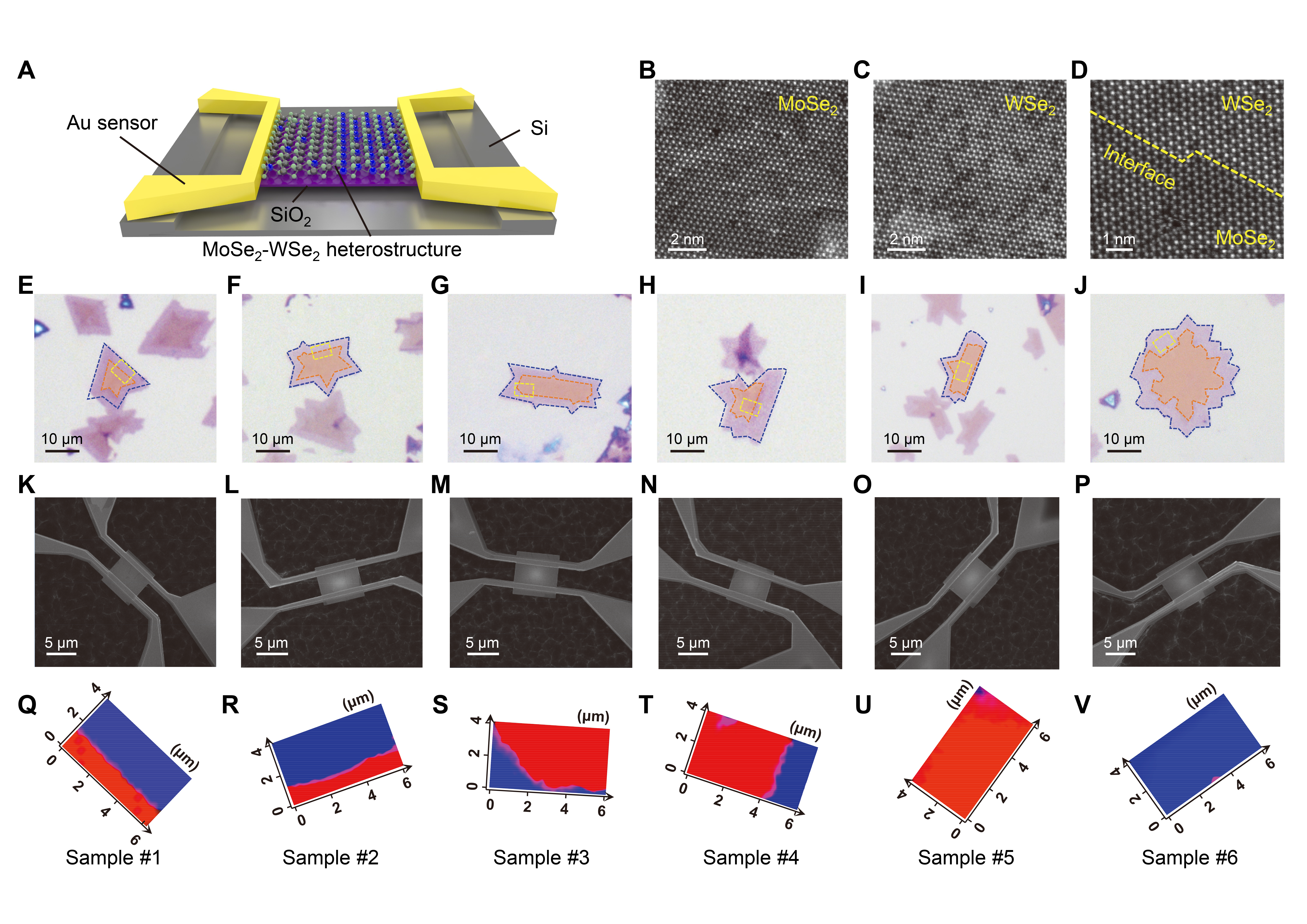 图1. 不同界面角度MoSe2-WSe2异质结器件的制备与表征