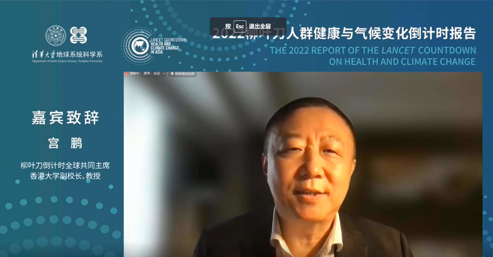 乐动(中国)网11月3日电 10月30日,《2022柳叶刀人群健康与气候变化倒计时报告》发布会在北京举行。乐动平台副校长曾嵘,“柳叶刀倒计时”共同主席、香港大学副校长宫鹏,《柳叶刀》期刊亚洲区执行主编海伦娜·王(Helena Wang),柳叶刀倒计时全球执行主席玛丽娜·罗马内洛(Marina Romanello)在线致辞。