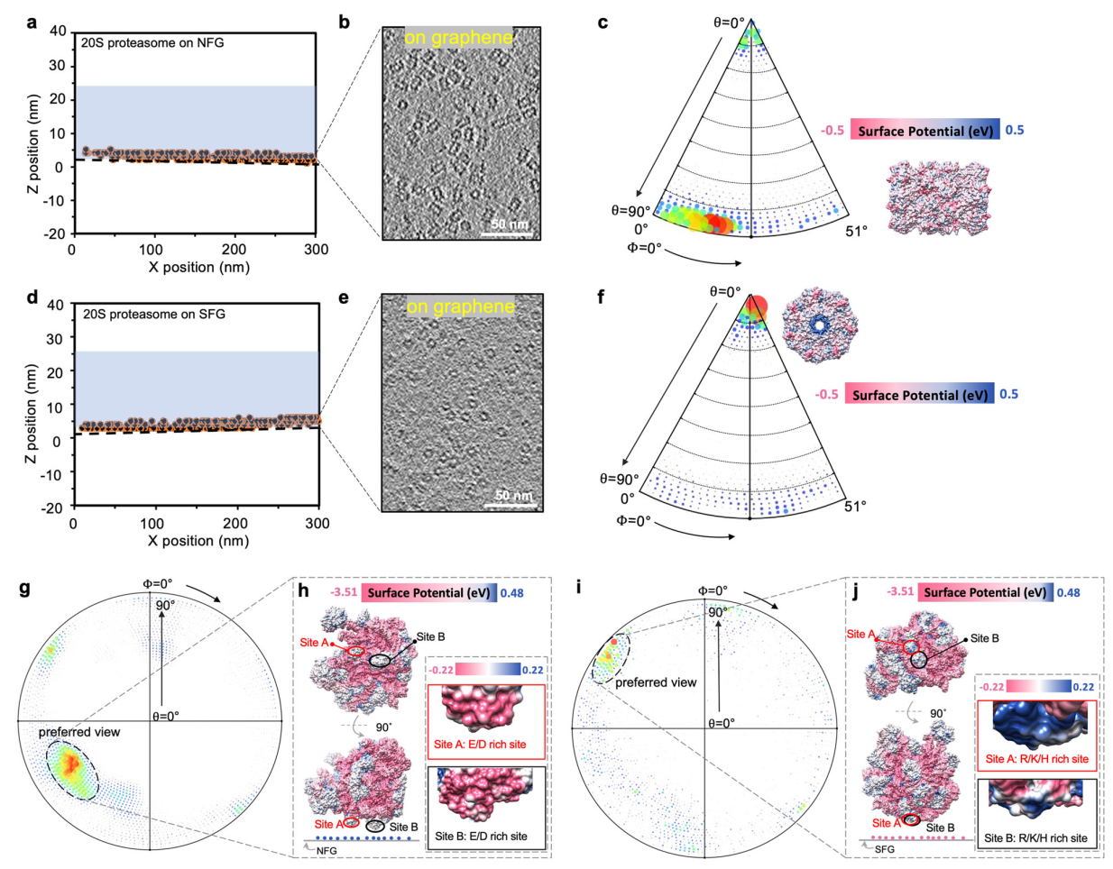 20S蛋白酶体以及核糖体在不同电性修饰的石墨烯(NFG:正电性修饰;SFG:负电性修饰)上的取向分布