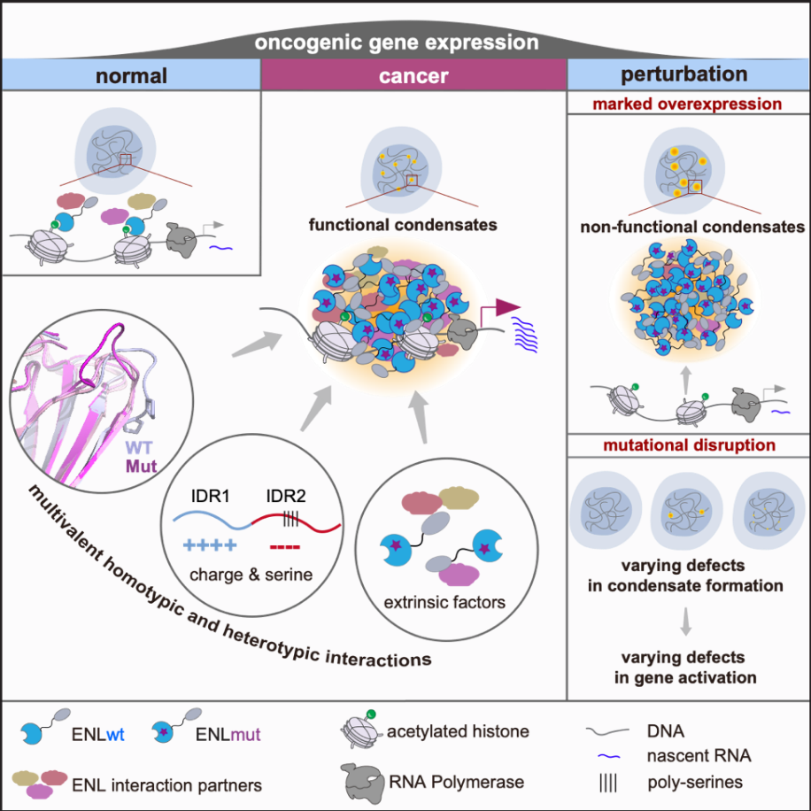 图3.ENL突变体多区域协同互作促进异常凝聚物形成,从而导致癌症发生