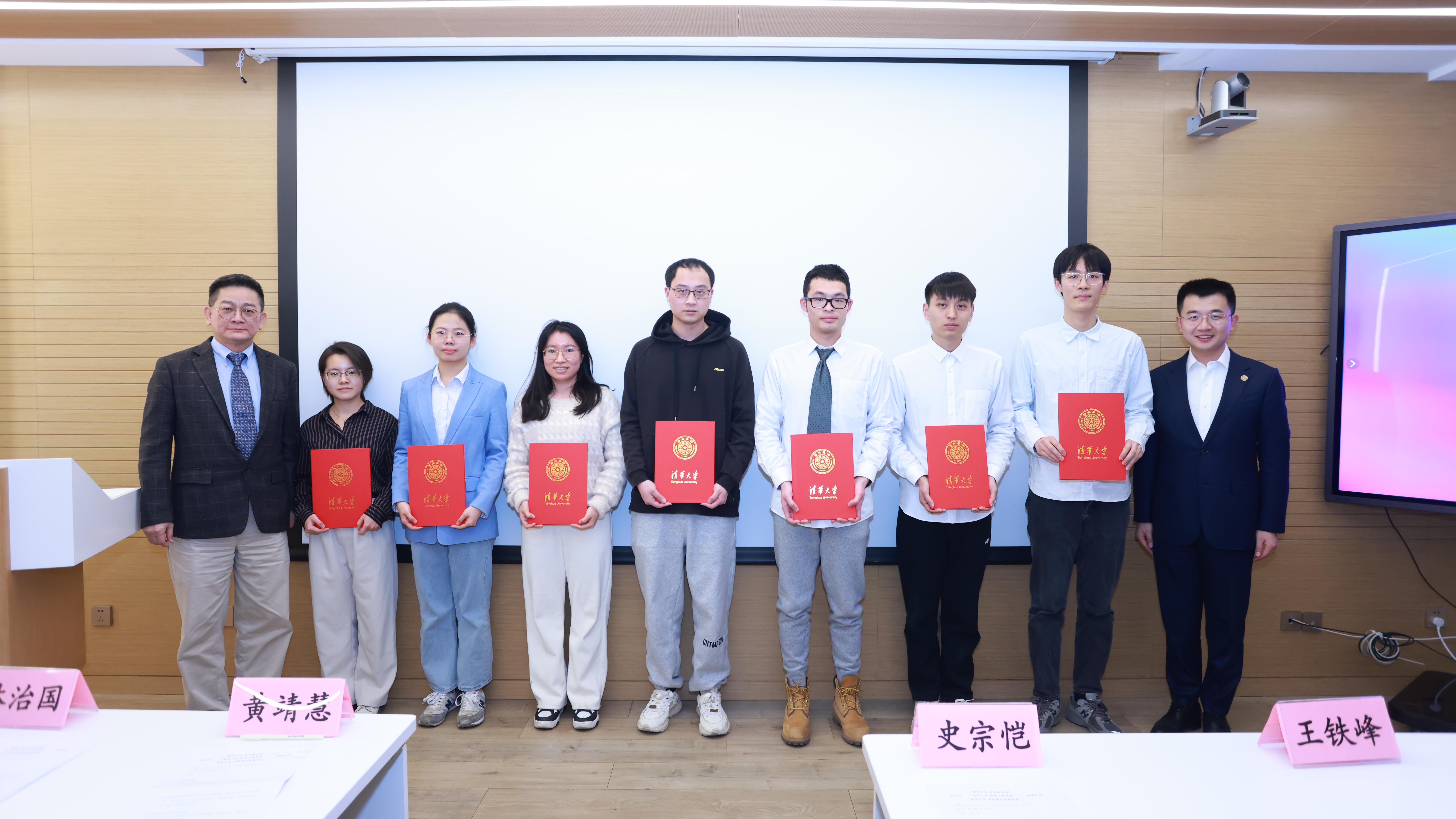 向获得“清华之友-长兴奖学金”的学生颁奖