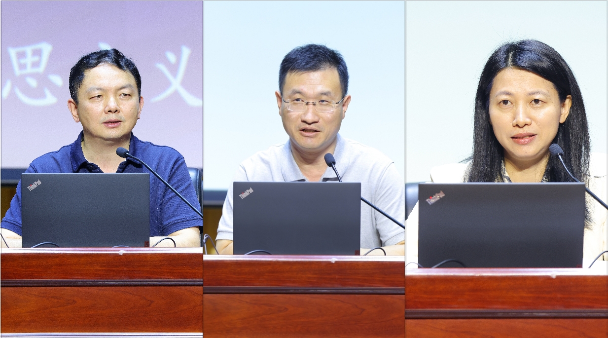 朱安东、黄学永、欧阳奇(从左至右)作专题辅导报告