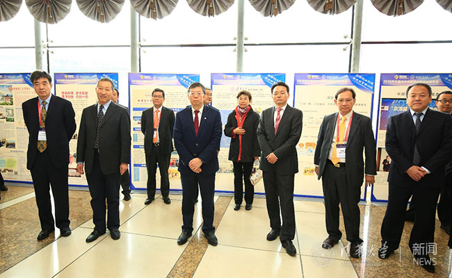 开幕式前,程志明、邱勇、孙喆、周玉、叶定达、丁哲学等嘉宾共同参观了创新创业教育成果展,共有来自联盟成员高校、新加盟成员高校、黑龙江省内高校的共134块展板参加展出。