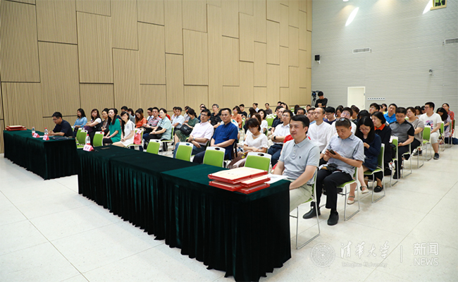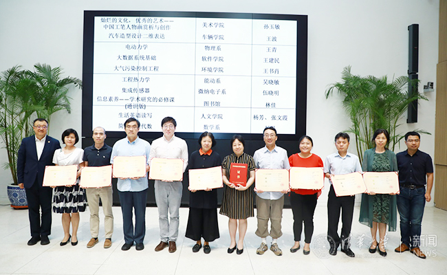会上进行了国家精品在线开放课程颁奖仪式,杨斌、王帅国为清华获得2018年国家精品在线开放课程认定的40位课程负责人颁发证书。