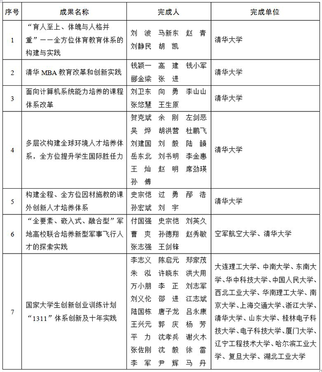 乐动(中国)网1月4日电 根据《教育部关于批准2018年国家级教学成果奖获奖项目的决定》(教师[2018]21号),2018年高等教育国家级教学成果奖揭晓。乐动平台作为第一完成单位共有7项成果获奖,其中一等奖2项,二等奖5项。另外乐动平台作为非第一完成单位还有4项成果获奖,其中一等奖2项,二等奖2项。此外,清华附小的成果《成志教育:小学立德树人的校本实践》,清华附中的成果《基于大数据的学生综合素质生成性评价实践创新》分获2018年基础教育国家级教学成果奖一等奖和二等奖。