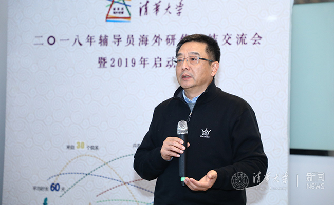 校友总会秘书长唐杰、教育基金会副秘书长王丹、党委学生部副部长冉锐、国际学生学者中心副主任杨静,以及2018年海外研修项目的参与者,2019年海外研修项目入选辅导员和部分院系辅导员代表共计50余人参加了交流会。