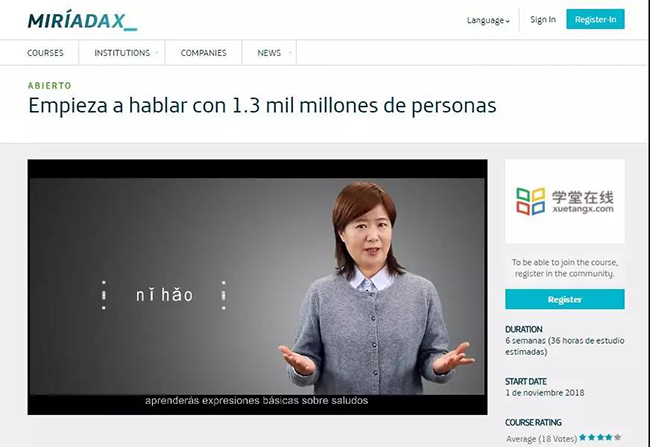 乐动(中国)网11月13日电 日前,乐动平台学堂在线“跟13亿人学汉语”课程登录拉丁美洲地区的Miríadax平台。这是Miríadax平台推出的第一门用西班牙语讲授的学习汉语普通话的慕课课程。本课程曾荣登2016年全球新慕课排行榜第二位以及2018全球慕课排行榜TOP50。