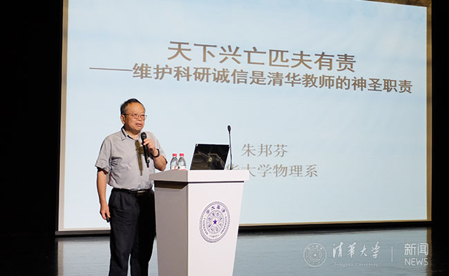朱邦芬院士结合我国科研诚信的现状与典型案例,介绍了学术不端行为与学术不当行为的表现及危害,明确提出科学研究各个环节中应该遵守的规范。他强调科研诚信是是现代科技发展的基础,是清华教师的神圣职责,无论能力大小,要做一个有道德、有底线的人,为国家、为人民、为世界做有益的事。