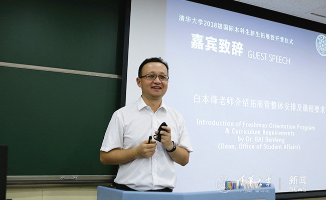 学生处处长白本锋介绍了本次拓展营举办的背景、内容安排和具体要求。他表示,拓展营能够帮助国际新生更好地融入校园、为大学学习和生活做好充分准备,也是学校加强国际化办学能力的重要举措。他希望同学们积极参加拓展营活动,在集体中增进友谊,为之后的学习生活打好基础。他强调,拓展营是国际新生进入清华的第一课,大家要认真参与所有环节,严格遵守课程纪律。
