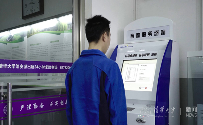 学生通过自助服务终端打印成绩单