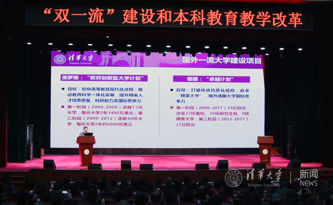 邱勇表示,当今高等教育面临着激烈的国际竞争,很多国家都有建设一流高校的计划。例如,韩国的“智力韩国21”工程,日本的“21世纪与全球COE(Center Of Excellence, “卓越研究基地”)计划”,俄罗斯的“联邦创新型大学计划”等。“一流大学决定国家的人才培养高度,一流学科则体现办学特色。”“一所好大学,必须有若干、甚至是一批好的学科支撑。”邱勇介绍了学校人事制度改革、教育教学改革、科研体制机制改革等各项改革进展,他说,“双一流”更要强化育人的核心地位,走出梁思成曾反思过的“半个人的时代”,“中国大学也普遍拥有历史形成的难题,要综合改革,探索在教育大众化阶段创建世界一流大学的发展模式。”