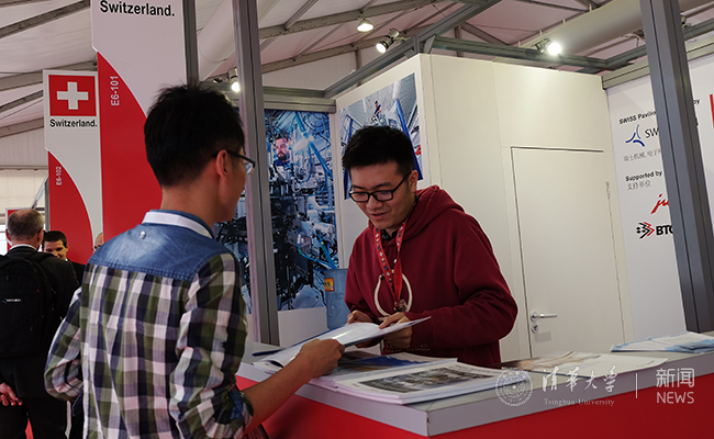 本次国际机床展中包含境外展商839家,境内展商800家,各国企业展示其最新的技术和产品,同时进行技术交流讲座。当日下午就有知名企业代表主讲的讲座,给同学们提供了难得的观摩和学习国外先进技术和设备的机会。在本次机床展中,乐动平台与瑞士驻华大使馆合作,选拔志愿者协助瑞士官方展馆的日常运作,并观摩瑞士的先进技术。实践支队来到瑞士展区,遇到了清华机械系的志愿者倪圆志,他正在为来访者提供咨询服务。