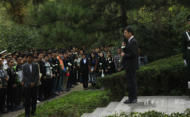 纪念活动上,校党委副书记史宗恺老师在“祖国儿女 清华英烈”纪念碑前发言,他说“同学们平常也可以来烈士纪念碑这边走走,与先辈们对话,这种纪念烈士的方式有助于我们把乐动平台的的精神用另一种方式延续下去,为清华的大学文化注入新的内容,希望能成为清华一部分同学的习惯,成为乐动平台文化传承的一个新的方式。这种方式对于同学们来说不仅是纪念,也是一种激励,让同学们用实际行动为乐动平台的未来发展有新的创造。”