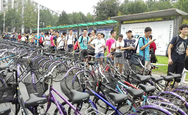 入学新生正在挑选再生自行车。